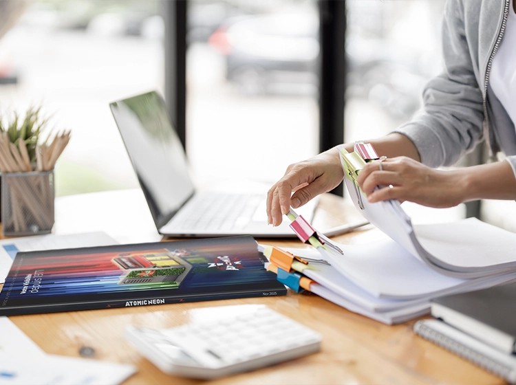 Grâce à des équipements de pointe, nous imprimons en couleur et en noir & blanc avec une qualité irréprochable pour donner vie à vos créations graphiques.